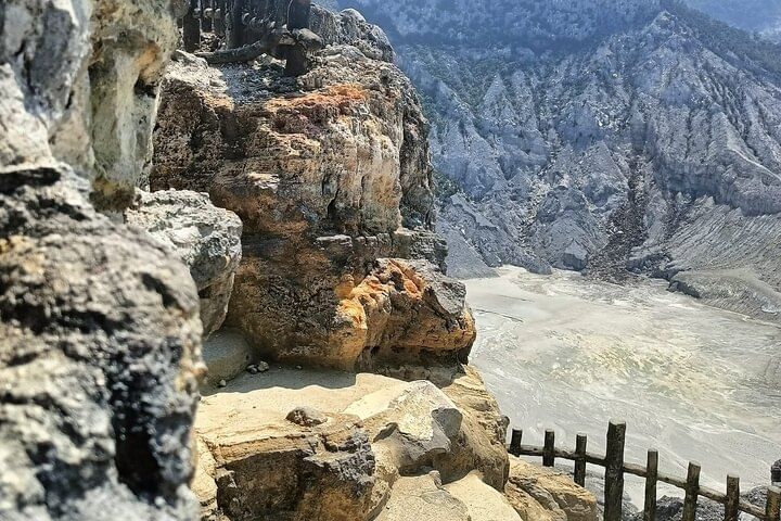 The highlight: The volcano is one of the active craters and erupts many times. Also there a remains of larvae making the area very natural, the crater is absolutely amazing landscape with a nice scenery view. Beside the beautiful panoramic it has a Legend called Sangkuriang. Step down as hiking 1 km away, then step on hot stone, mud, and sulfur. Some holes are the sound of bubbling, Bulb bulbs. You can try boiling the egg or therapy. You'll going to have a chance to try local coffee, taste the Pineapple and local food, and Stop at rice field and tea plants. You can choose one spot photo area such D'castello to see the tea plants panoramic. At castello provides many rides, here for children must be recommendation or adult can be happy too.